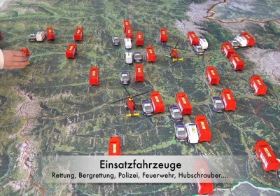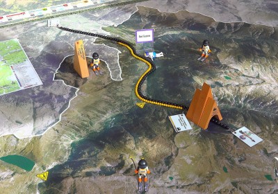 Statt mit dem Finger auf der Landkarte, bewegen wir uns zu Fuß auf einem überdimensionalen Abbild unseres Bundeslandes und verwandeln dieses durch Auslegen von Materialien in eine lebendige 3D Landschaft.